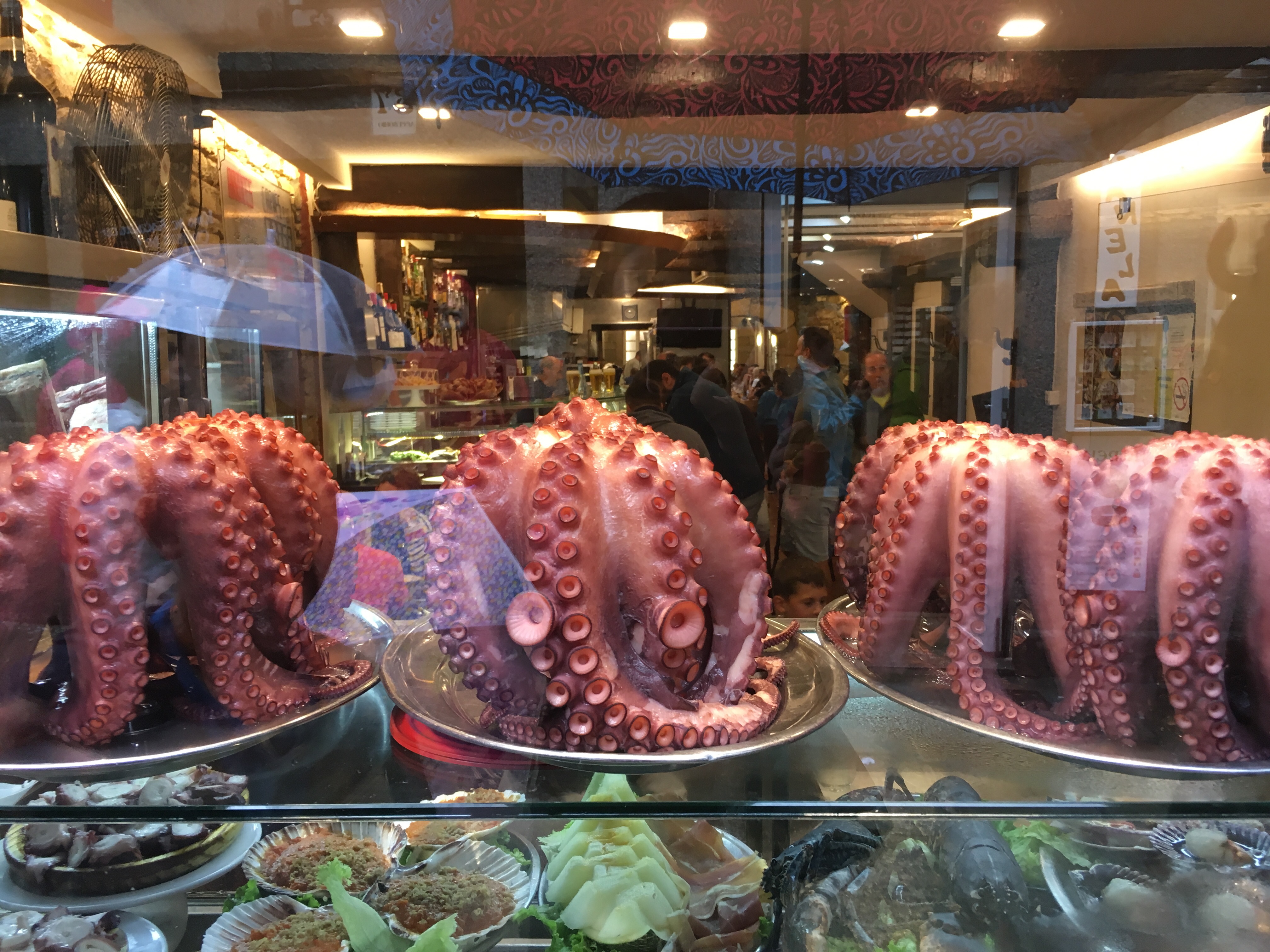 A one hour flight north and we are now in Galicia, a region known for sandy beaches, spectacular seafood, and an eclectic and varied history. Over 2000 years ago, this area was inhabited by the Celts which is reflected in the presence of old circular stone structures called castros and bagpipes (!) in Spain! We started our visit in Santiago de Compostela, the main end point of the famous 800km Camino de Santiago, a pilgrimage trail traveled by 150,000 or so people every year. The endpoint is the cathedral where Santiago is supposed to be interred. The cobblestone streets lead through small alleyways and there are ancient plazas and churches around every corner.