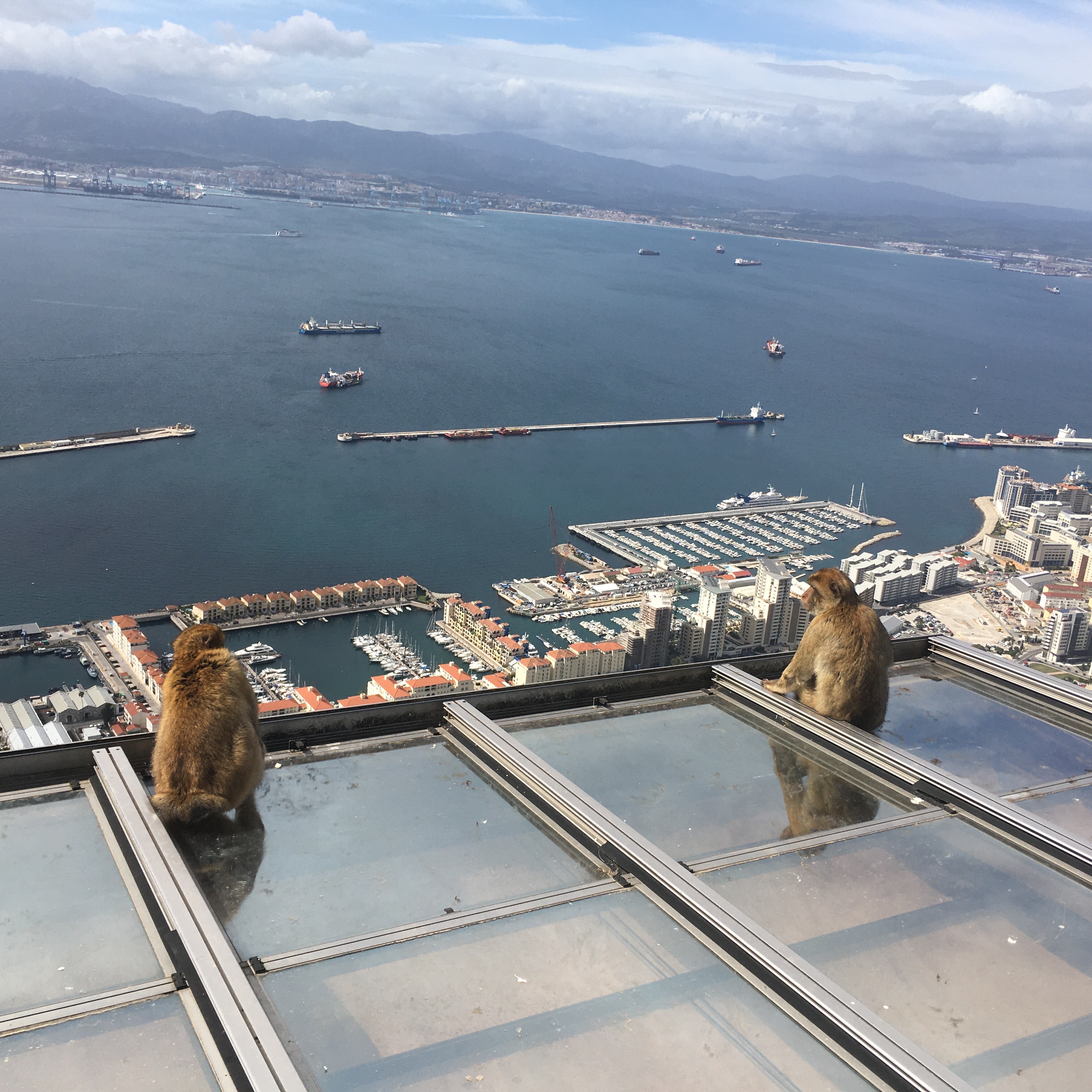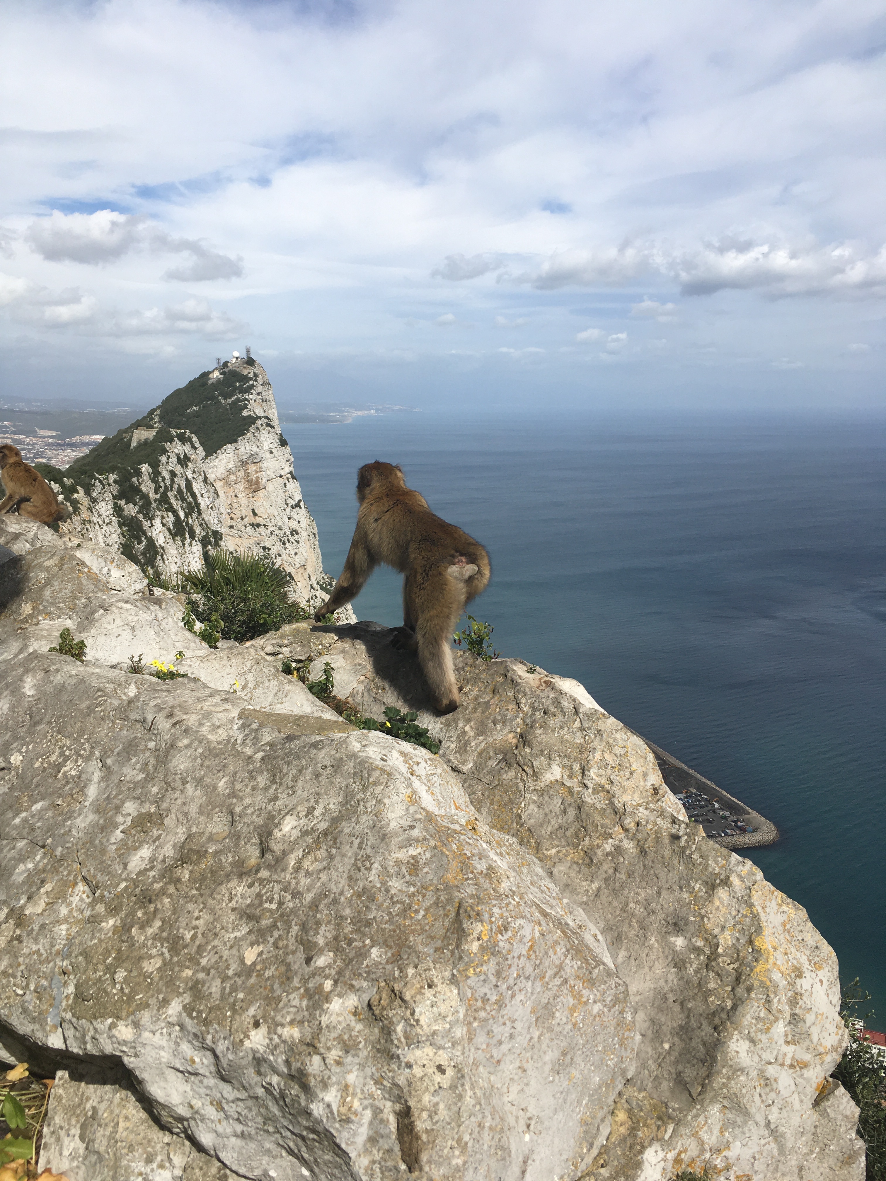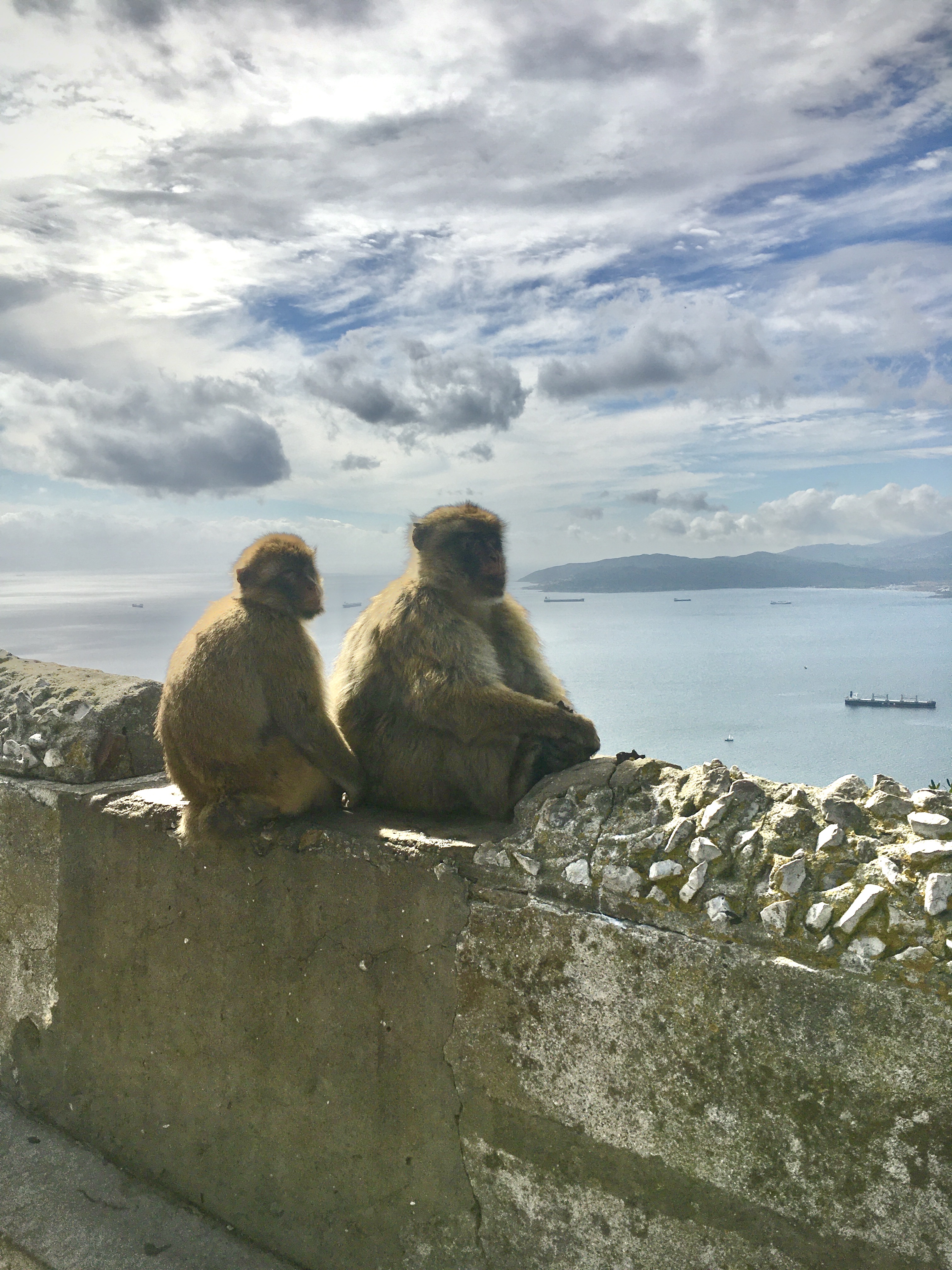 We took a very steep cable car up the sheer rock face of the mountain where Moors and British troops carved out tunnels and caves for defensive purposes. The views were spectacular. But the best part, and the primary reason we went, was MONKEYS! Macaques, to be exact. They were brought over a while ago and seem to live off tourist food. We saw one female grab a sandwich out of some British tourists’ hands and another one take a bright blue candy out of a squeamish girls hands (I think it was an airhead). The lesson is, do not eat candy around human-acclimatized macaques! We also saw one literally jump on a mans back to forcibly take stuff out of his backpack. This was not their first rodeo!