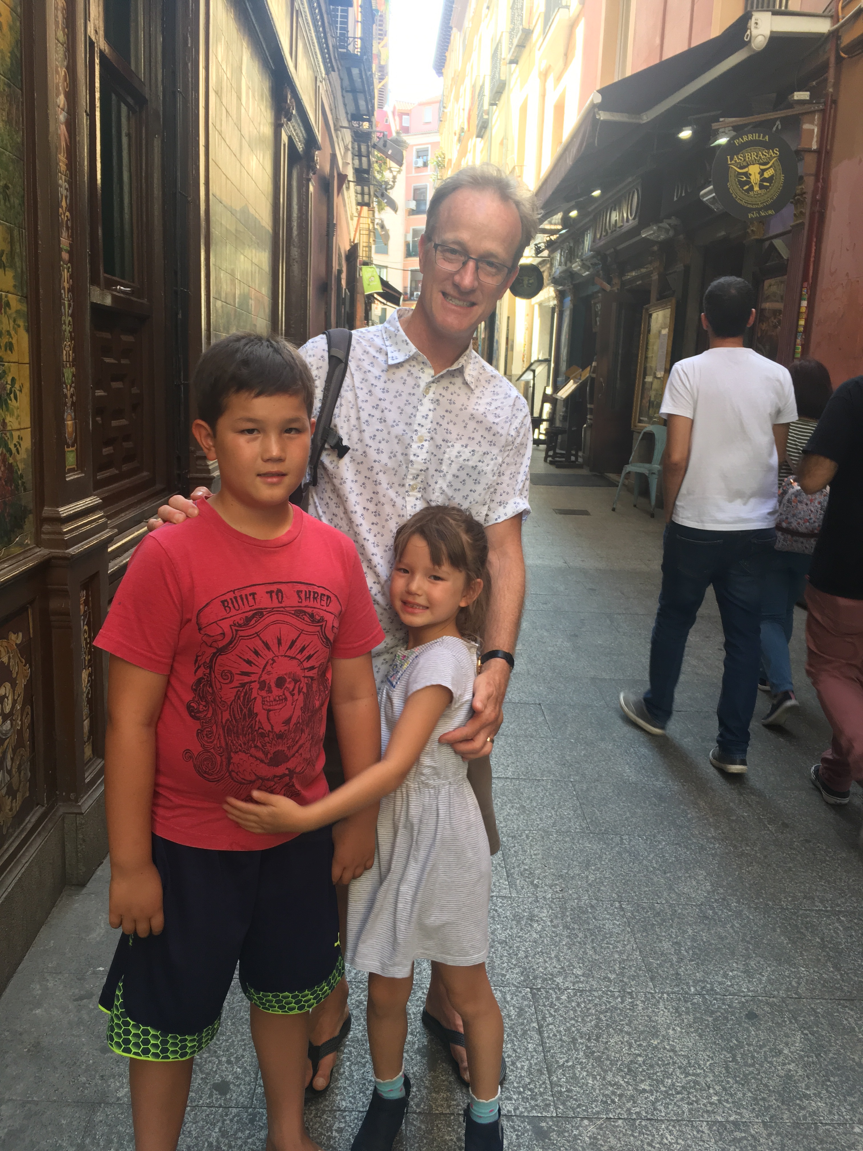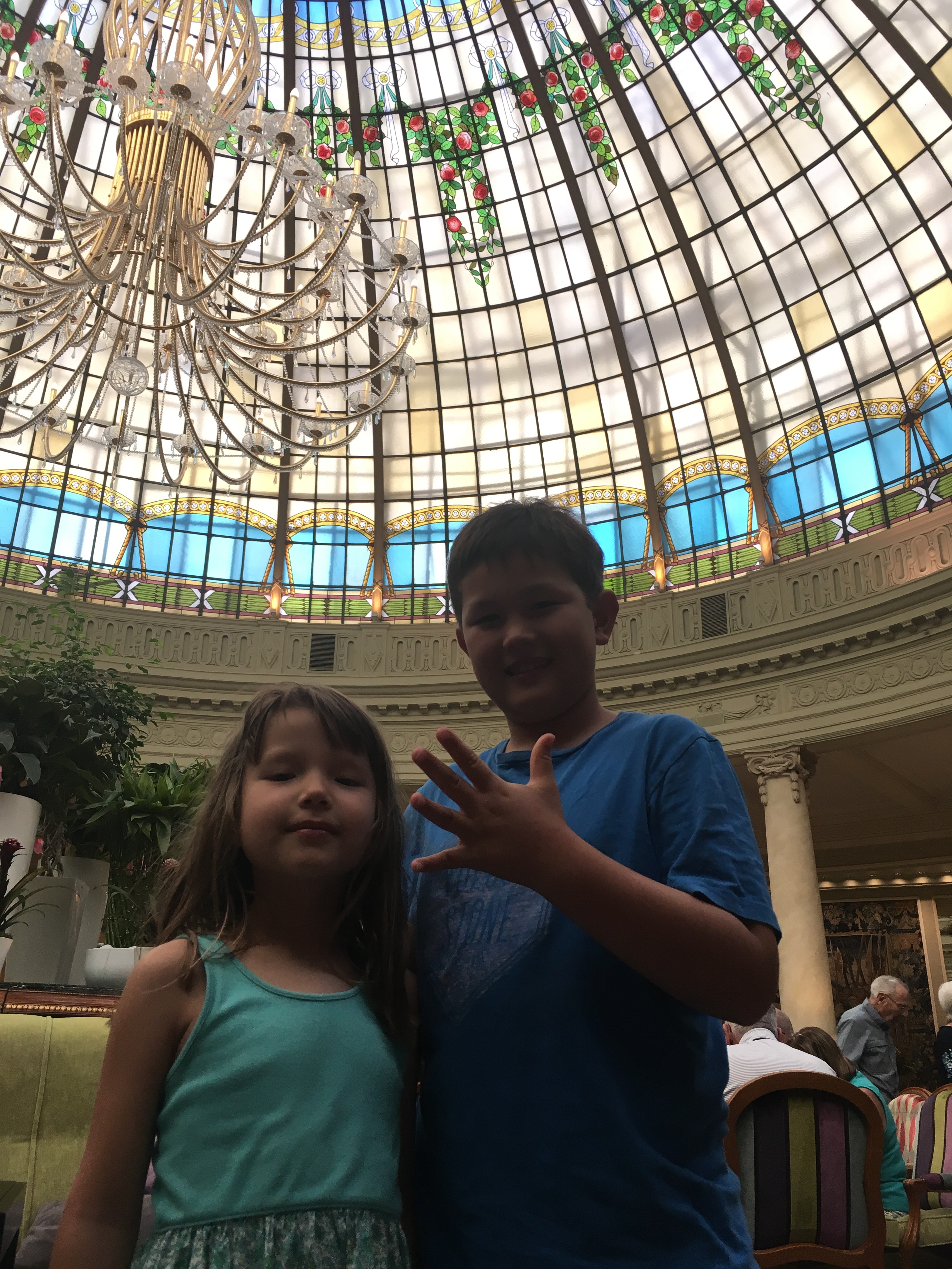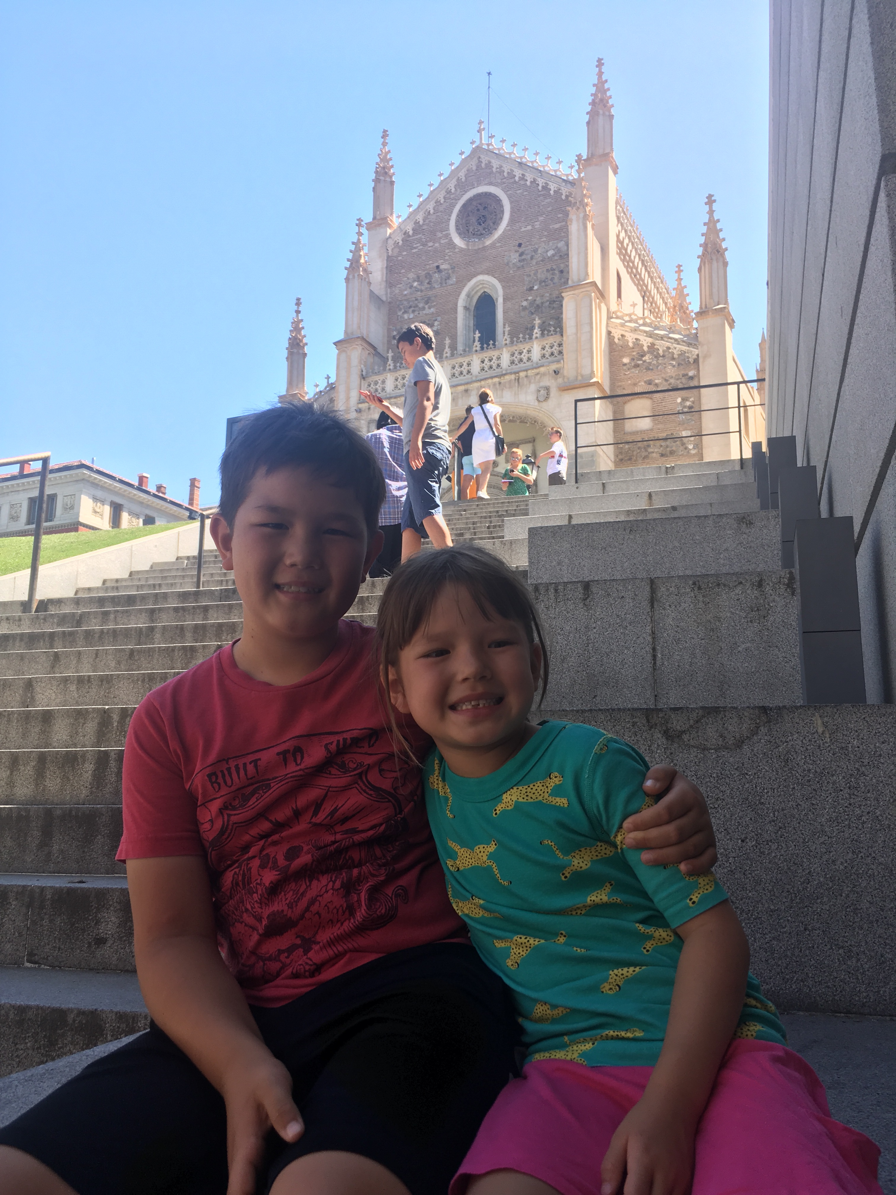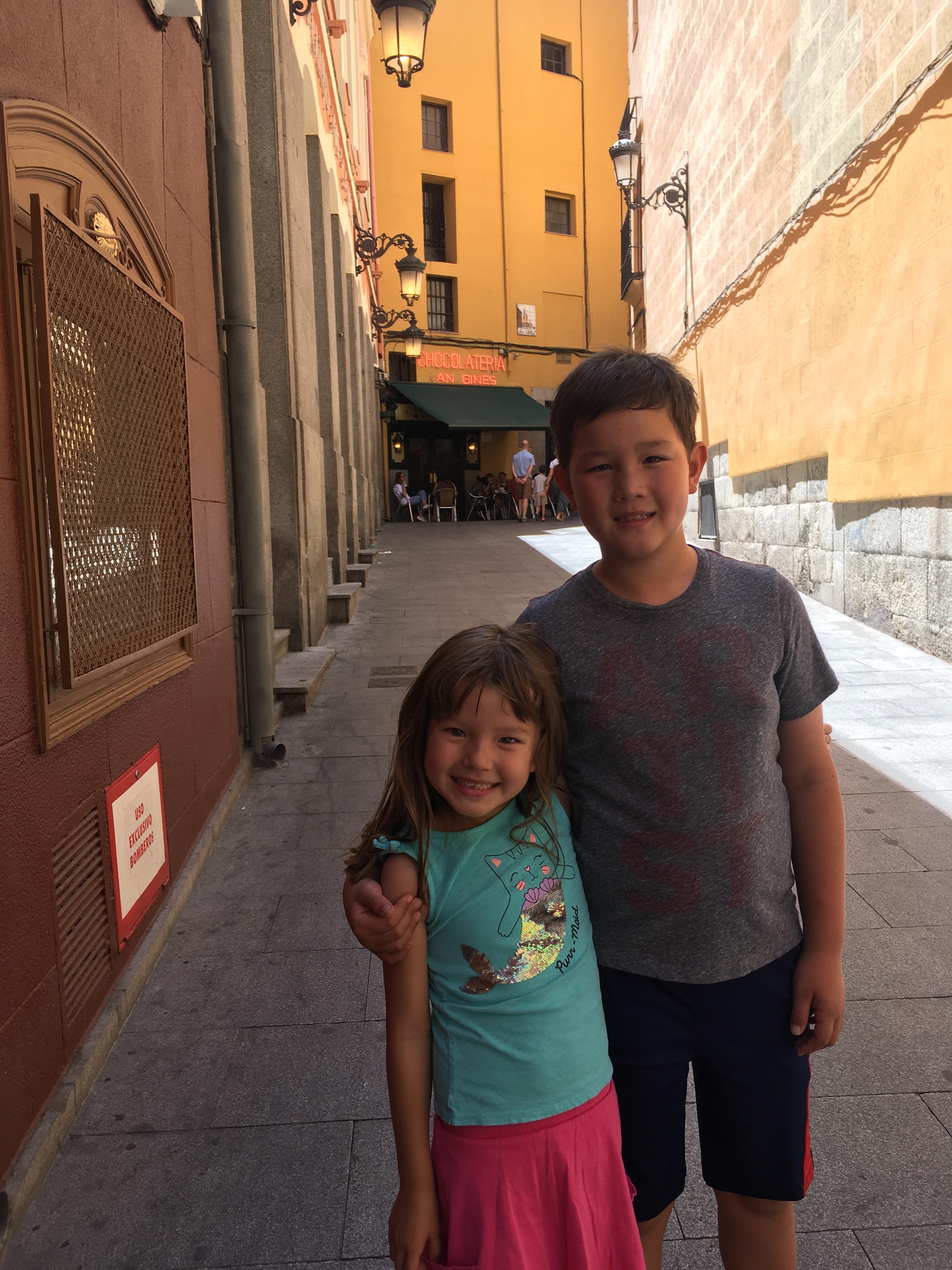 While we haven’t had time to take in the sights yet, looking for housing has brought us to some different neighborhoods in town and it has been fun to see the classic homes in Madrid’s Centro district including the party scene in Chueca, the high end shops in Salamanca, and the small cobblestone streets and literary history of Cortes. The kids have been troopers and their enthusiasm for apartments is highly correlated with the effectiveness of the AC system in each place. Yesterday, after a long day, we got very expensive ice cream at the Palace hotel to escape the heat and relax for a bit. Jett declared it the best ice cream ever and wants to live nearby so he can go every day. He’ll need to get a job if that’s is his plan!