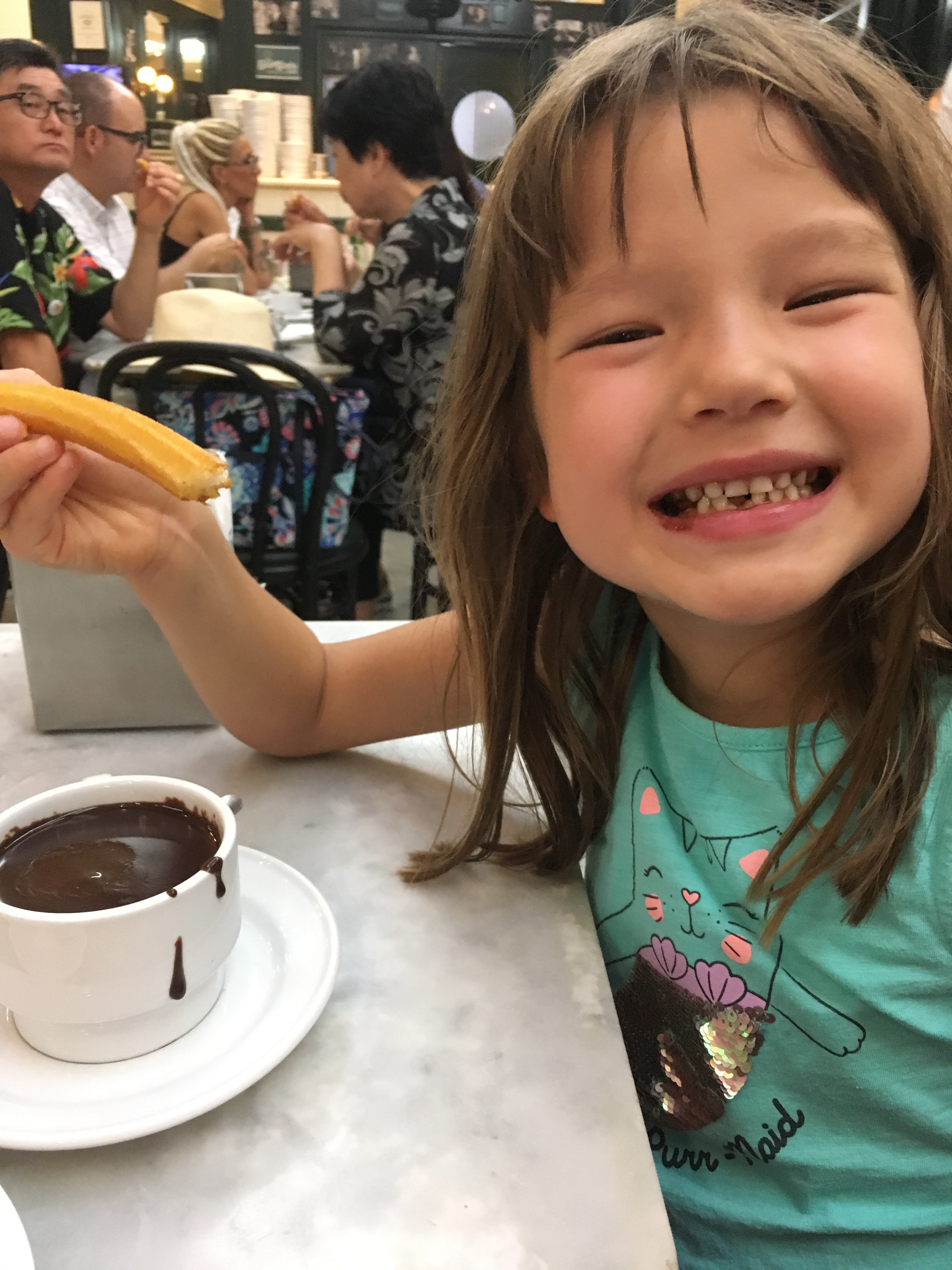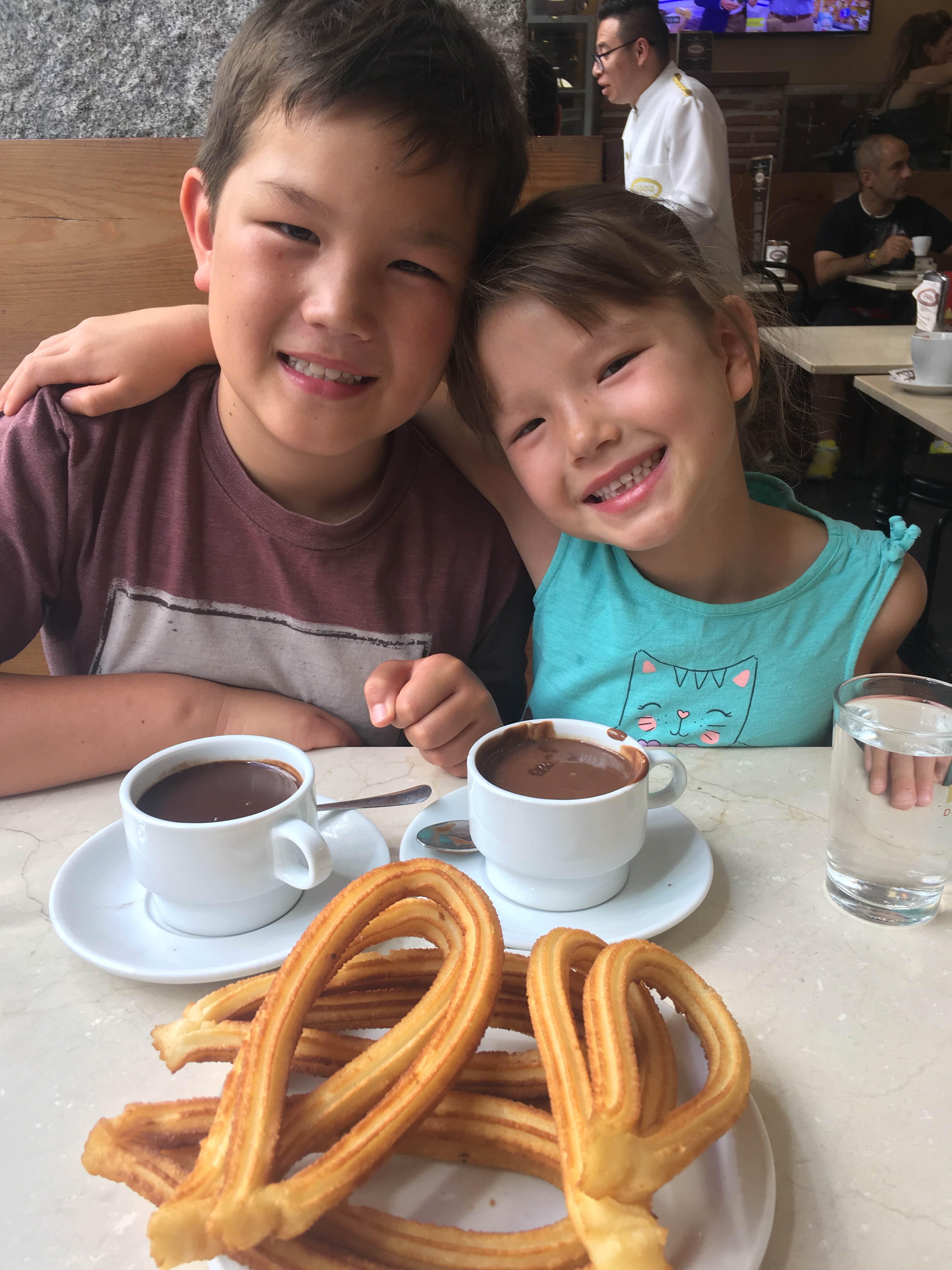 We explored some beautiful plazas and then rented bikes and and an electric scooter for Jett to zip around Retiro Park. No pictures there since we were going so fast. Then we had to try the famous churros and hot chocolate, which is actually thick chocolate syrup. It was delicious and may be a regular breakfast for us!