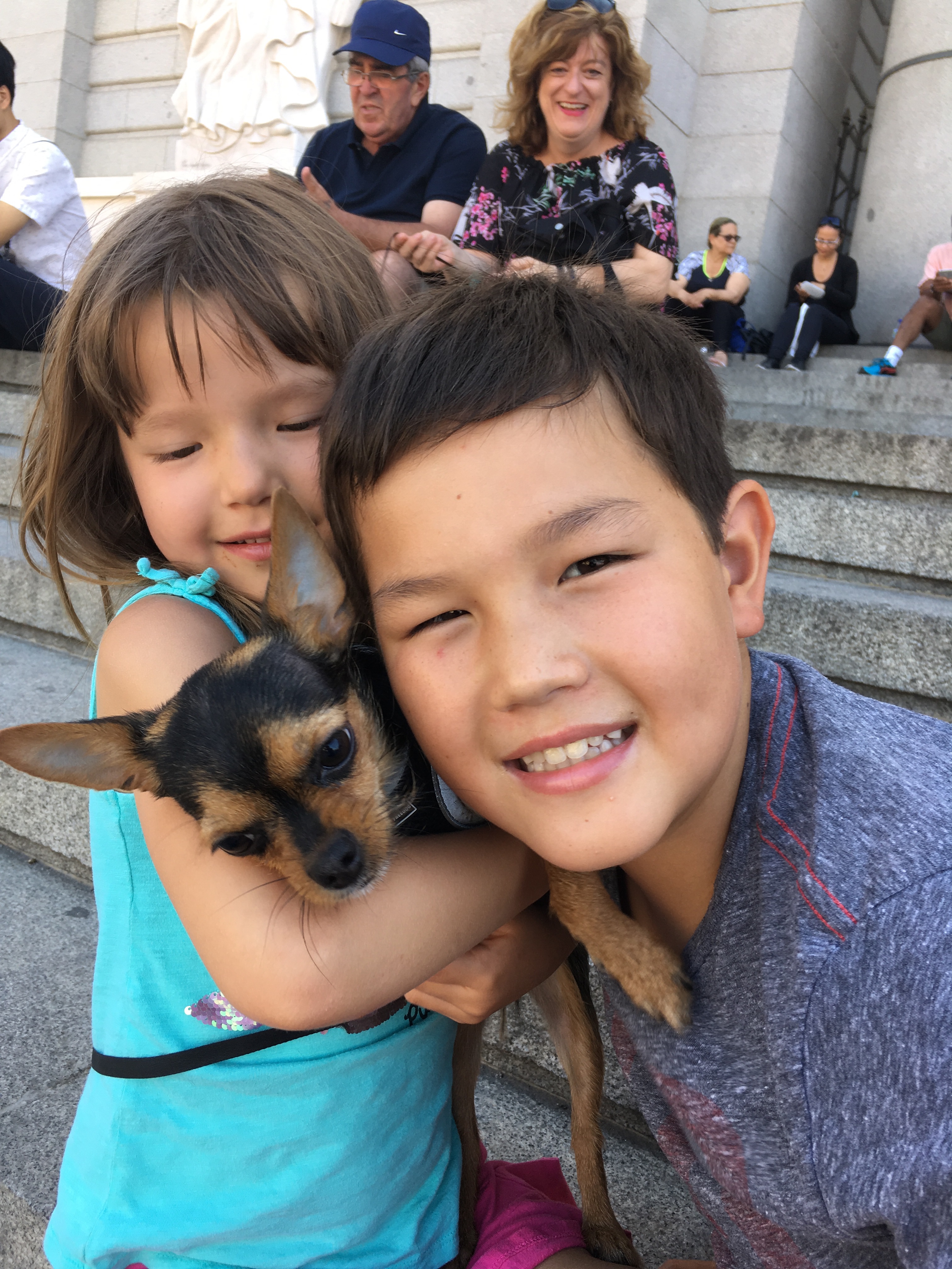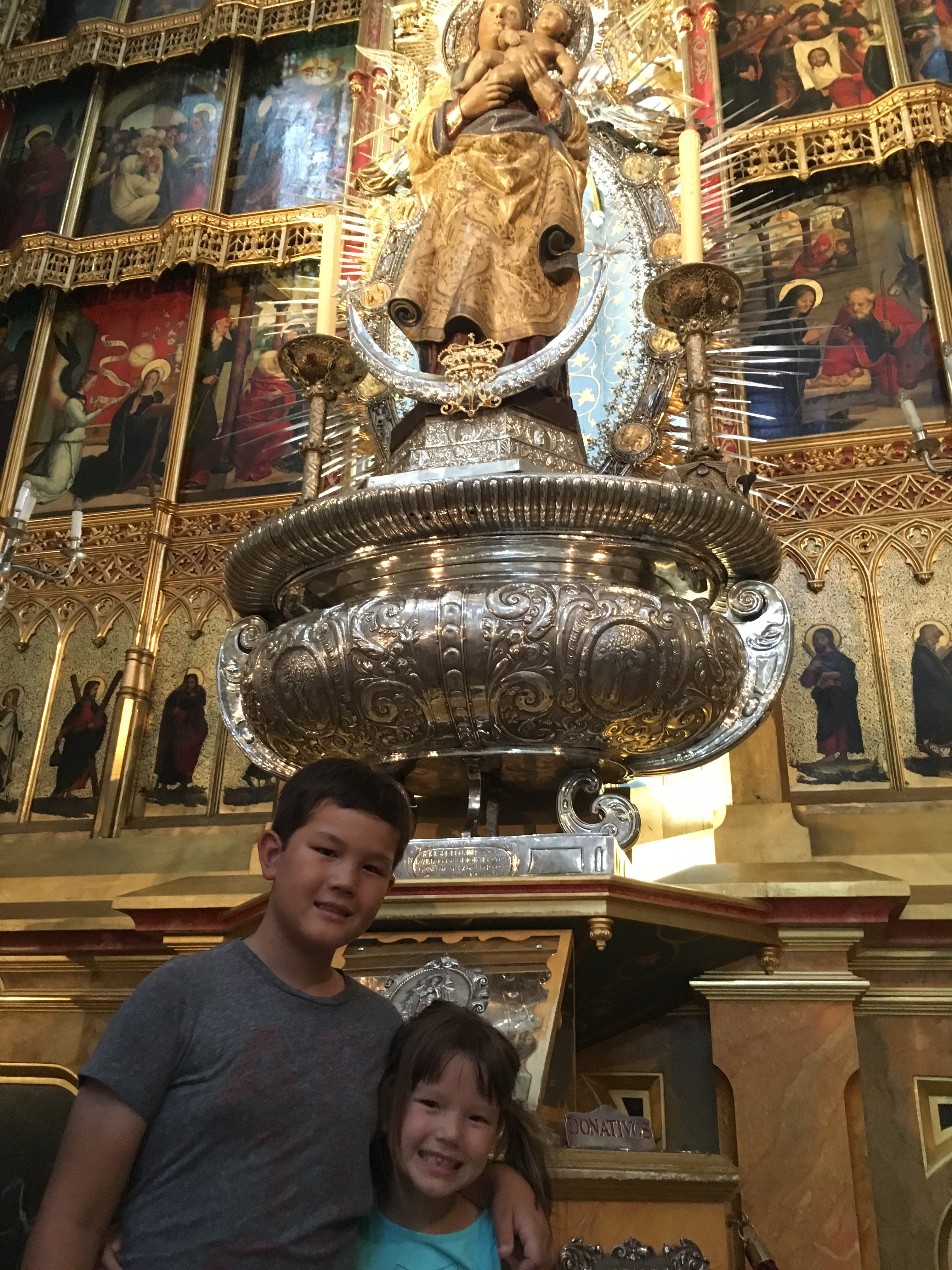 Then we explored the palace, the plaza San Miguel, and most importantly almost adopted the worlds cutest chihuahua. We also checked out the palace cathedral which was beautiful and huge and had lots of statues and paintings of Jesus. I had to finally explain who Jesus was to Jett. Where to begin… Jett spoke his first Spanish sentence to a Spanish person, “mas pan, por favor.” Bread may be the gateway to learning!