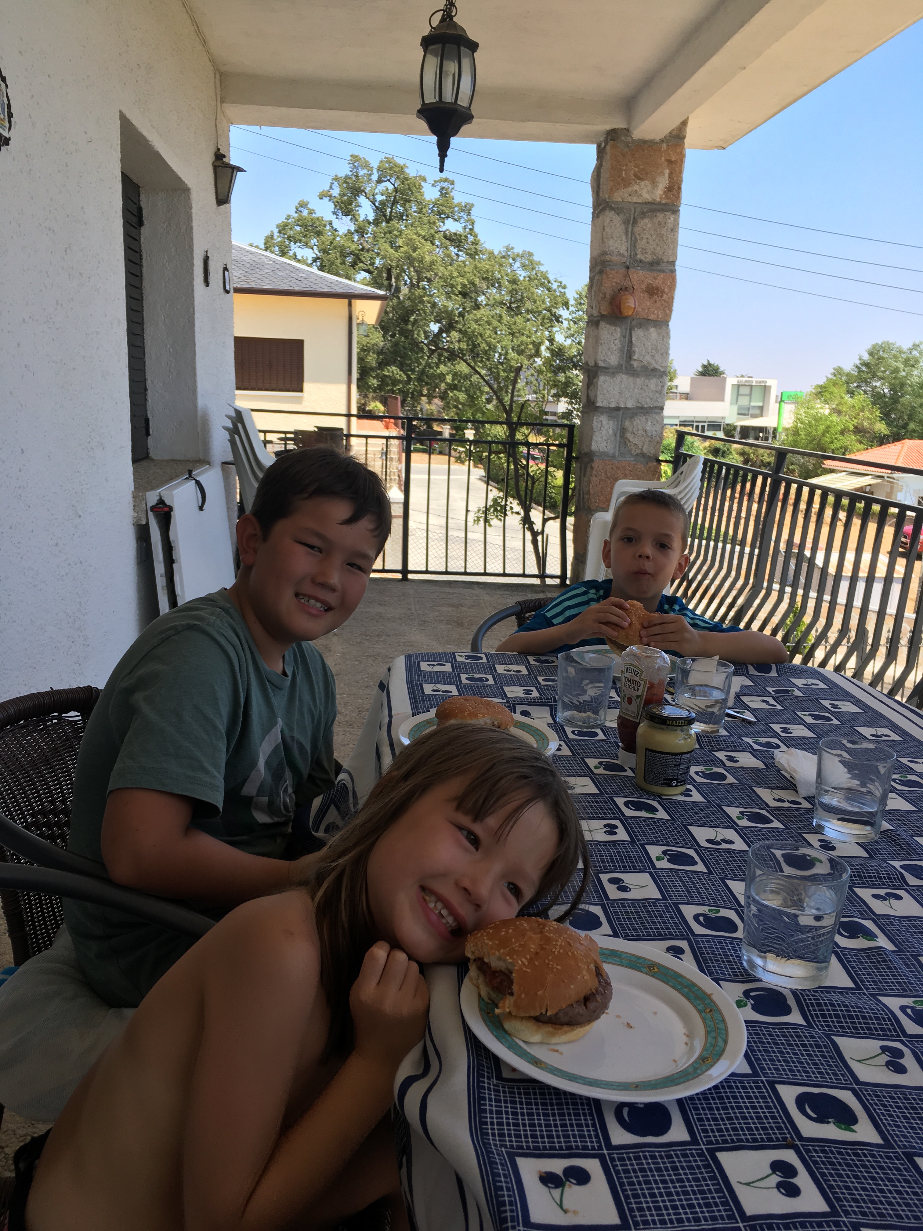 Saturday was our friend, Iñigo’s birthday so he invited us to his mom’s house in Miraflores, a village just outside of Madrid. We had a full three course Spanish lunch which was a surprise to the kids when they got a hamburger after their first course of pasta! And then cake! She has a pool! It was paradise!